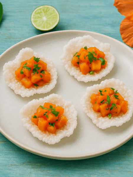 Mini Tostada Cups with Black Bean Purée, Avocado & Pickled Onion