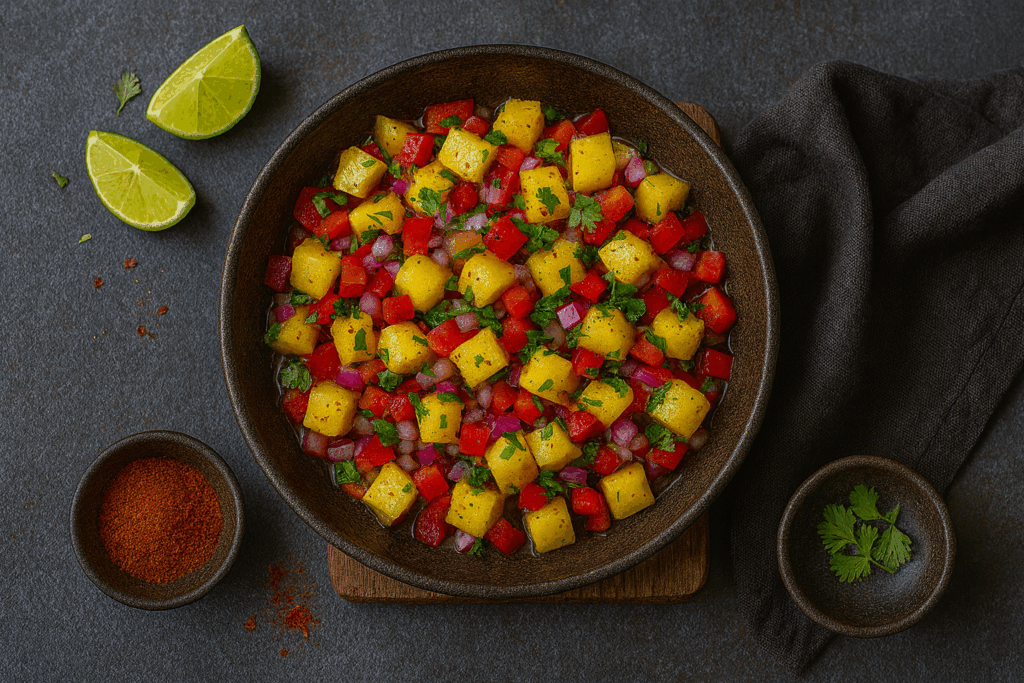 This fresh, zesty salsa bursts with colour and tropical flavour. Juicy ripe pineapple is tossed with red pepper, red onion, jalapeƱo, and a squeeze of lime, bringing brightness and balance to any Mexican spread. Perfect as a side, topping, or snack, this salsa is a crowd-pleaser, simple, quick, and endlessly refreshing.